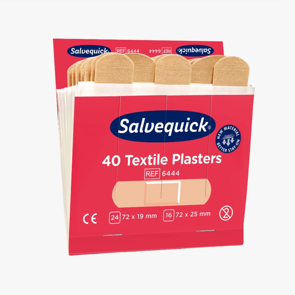 Salvequick Textilplåster är följsamma plåster av hög kvalitet. Plåstren är allergitestade. De är lätta att applicera, flexibla och smidiga att använda.