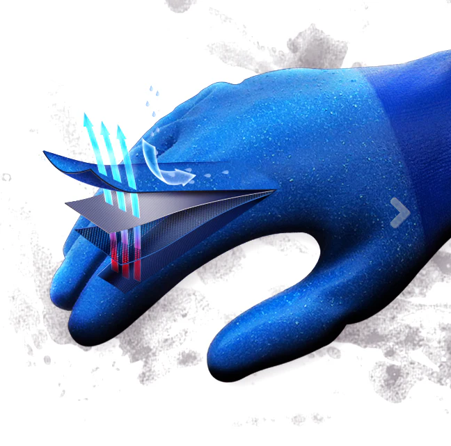 Den använder två mikroventilerade membran för att hålla händerna torra och skyddade.